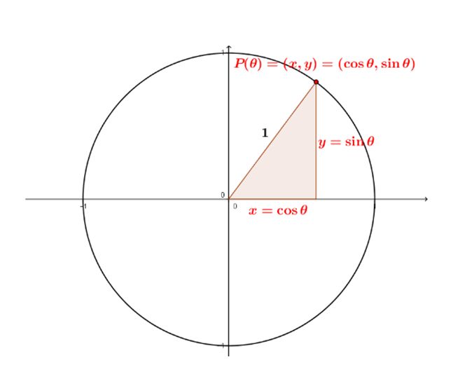 Le triangle rectangle traité ici, peut être vu comme un triangle qui évolue dans un cercle de rayon 1 ou r est l’hypoténuse du triangle.